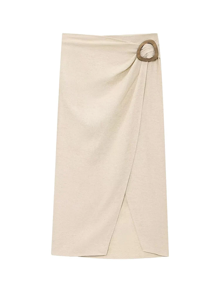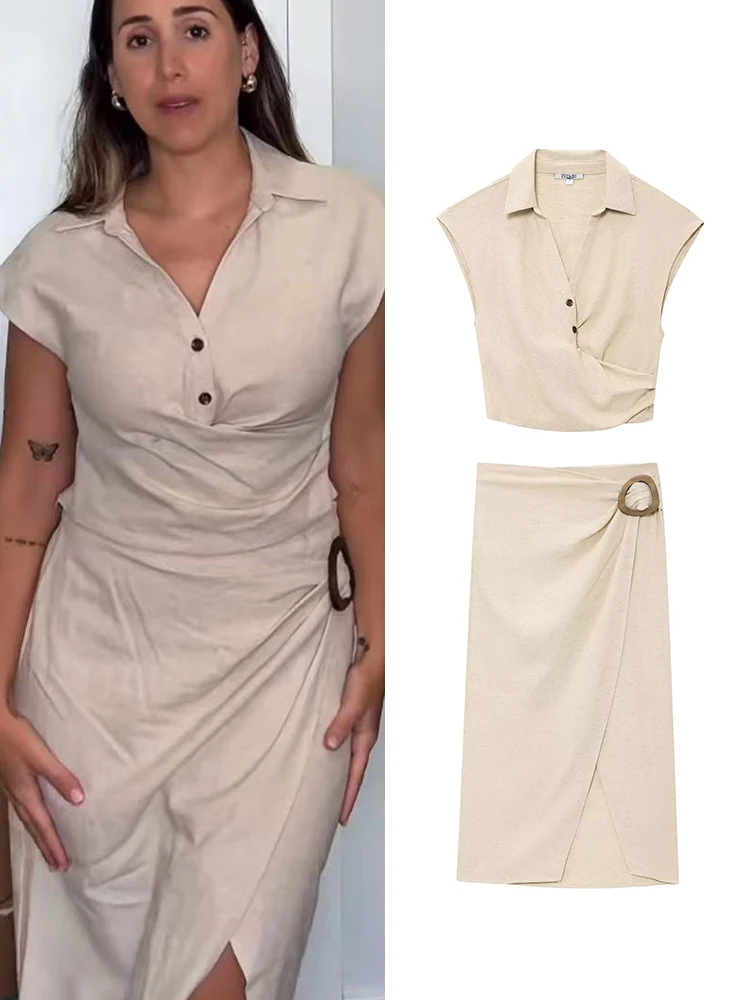 TFMLN 2025 جديد المرأة تنورة مجموعة الصيف أنيقة بلا أكمام الخامس الرقبة القمم شق ميدي التنانير موضة عادية الصلبة ضئيلة النساء الدعاوى
